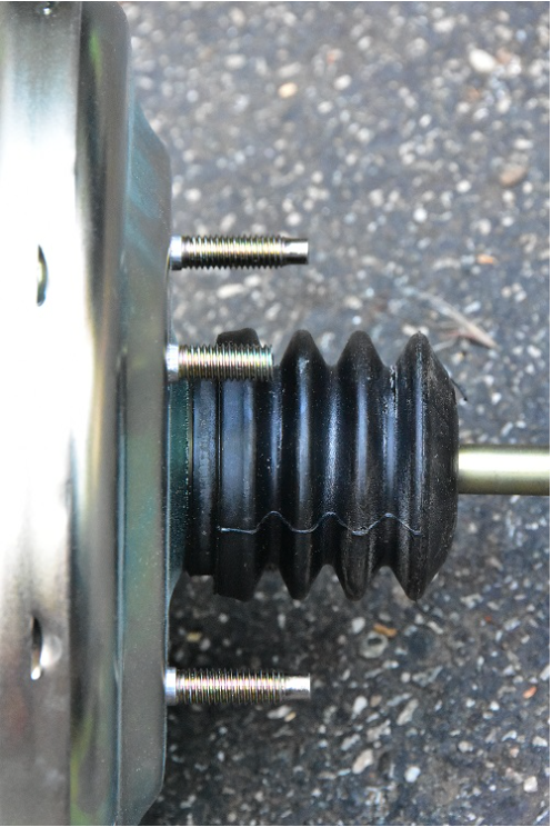 9. Test fit the booster in the pedal box to check the alignment of the brake linkage and adjust the length if necessary. The manual says to allow about 1mm of overtravel of the pedal to ensure that the booster operates correctly (you should have to press the pedal just a bit to get the linkage pin installed). Install the vacuum hose to the booster.