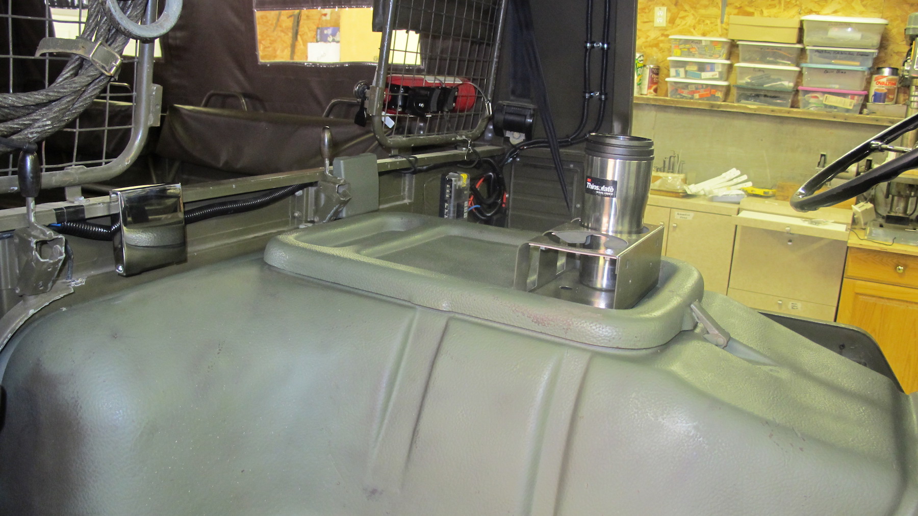 I wanted a cup holder and created one for my 3D printer. I replaced the rifle holders and mounted the drink holder. Works great. Going to make a few modifications on the next try after completing the restoration. Also created a iPhone Mount to attach to the wiper bracket. Here is the link for the file.